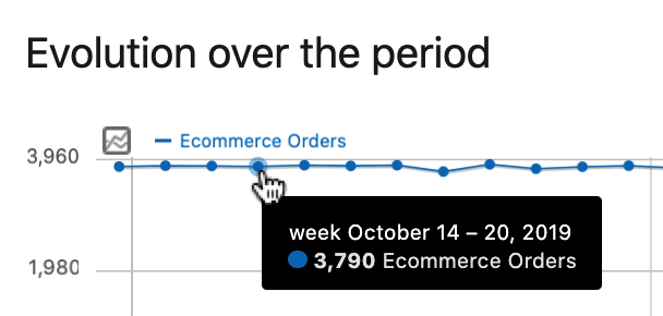 To understand how your sales are trending over time, you can review the evolution graph shown at the top of the Ecommerce Overview page.
