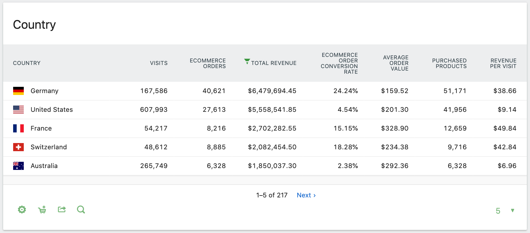Reports show sales by Country, Continent, and Region. These insights can guide regional targeting, new store openings, or localized campaigns.
