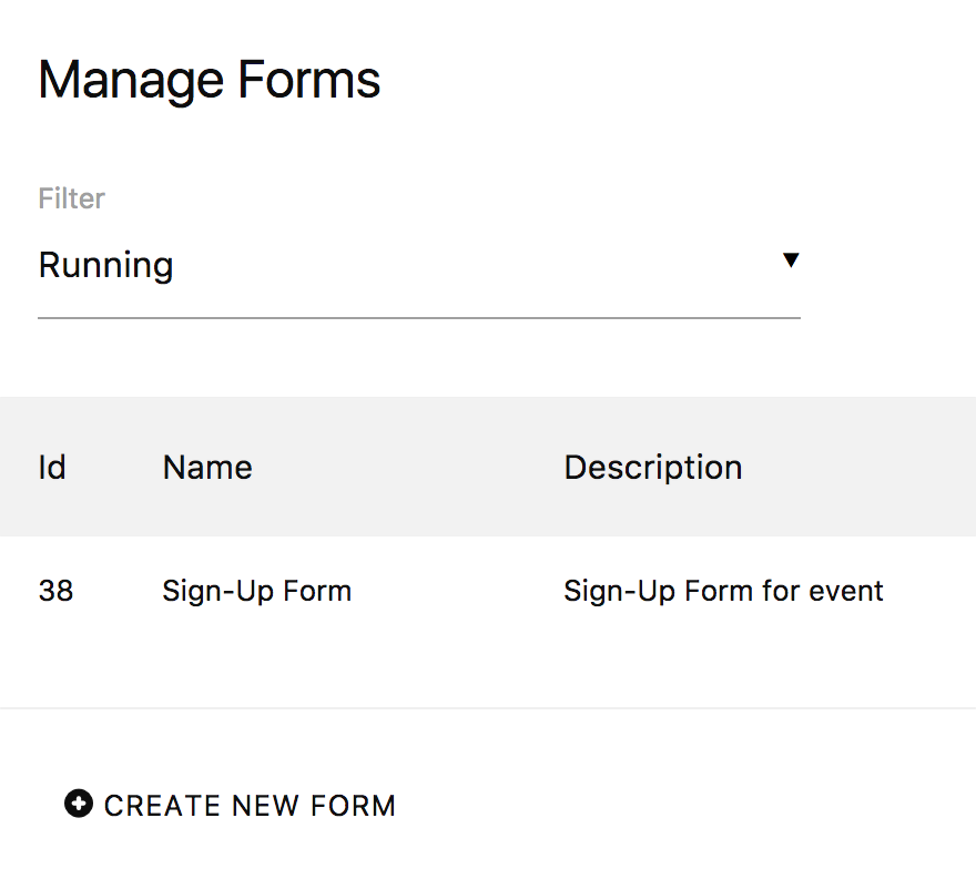 To create a form, click Create New Form. To edit a form, click the edit icon next to the existing form’s name.