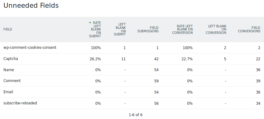 **Unneeded Fields: **Fields that are often left blank can likely be removed which in turn will improve your conversions. Less form fields will increase the form starter and form conversion rates as your visitors will need to put less effort into filling it out. Your users might leave some fields blank because they find them ambiguous or not relevant.