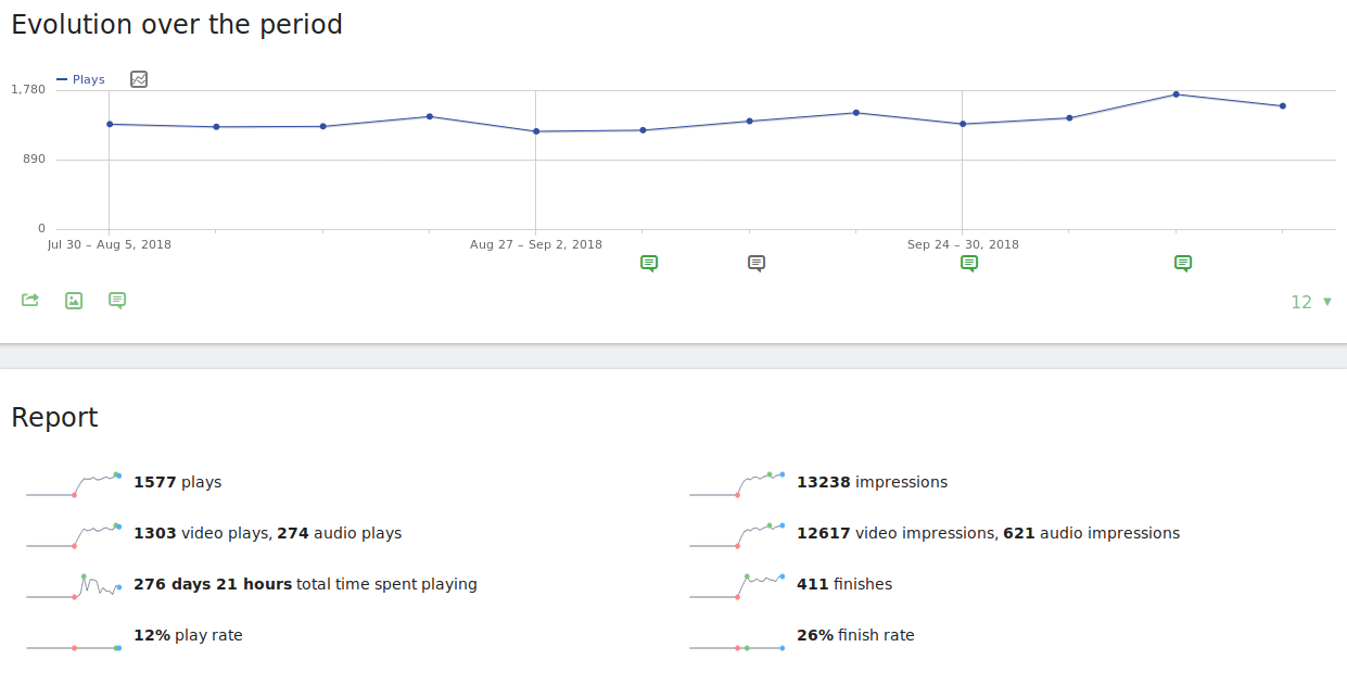 The “Overview” report gives you a summary of your media metrics and how they have evolved over time.