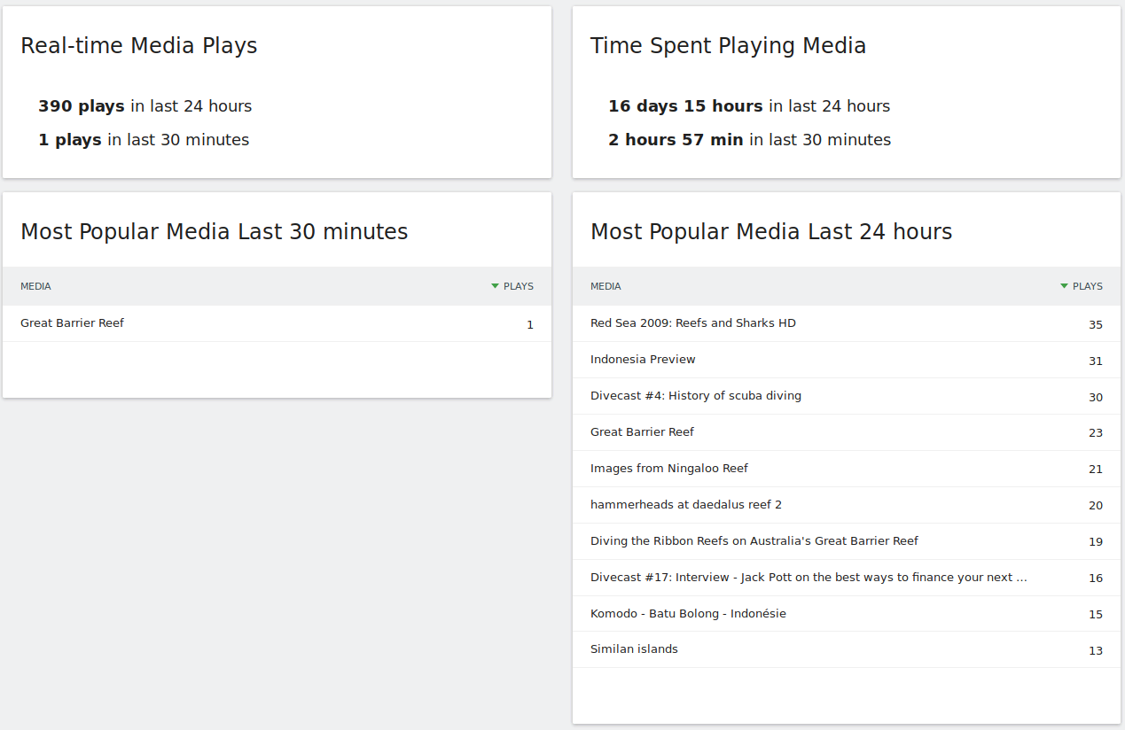 With the Real-time report, you can monitor what is happening right now with your media content.