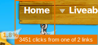 Hovering over a link shows the target URL in the lower right, the absolute number of clicks, and how many links point to the same location. For example: “3451 clicks from one of 2 links”.