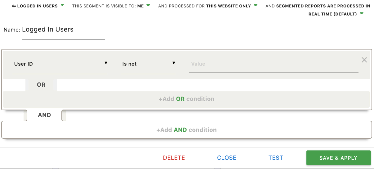 Segments let you analyse groups of visitors based on specific criteria. Paired with the User ID feature, you can create a segment specifically for logged-in users. The key step is to assign User IDs only to registered and logged-in visitors. From there, use the segment builder to check for the presence of a User ID, which signals a logged-in visitor.